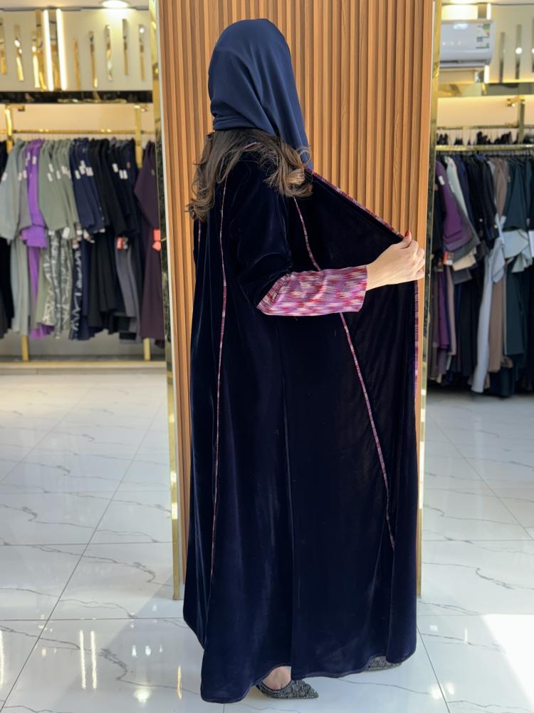 عباية جوانا كشميري مخمل كوري قصة A لاين كحلي
