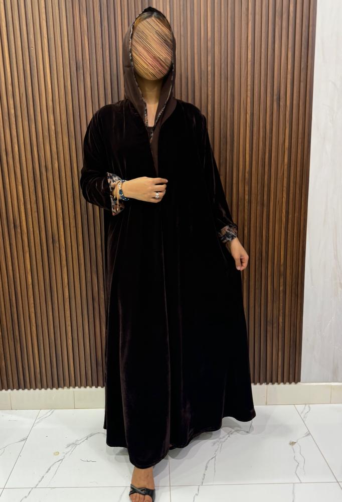 عباية دبل فيس مخمل بني مع كشميري نقش مميز