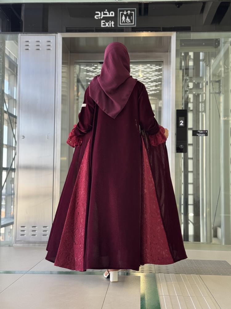 عباية وتين مخمل برغندي مع دانتيل برغندي