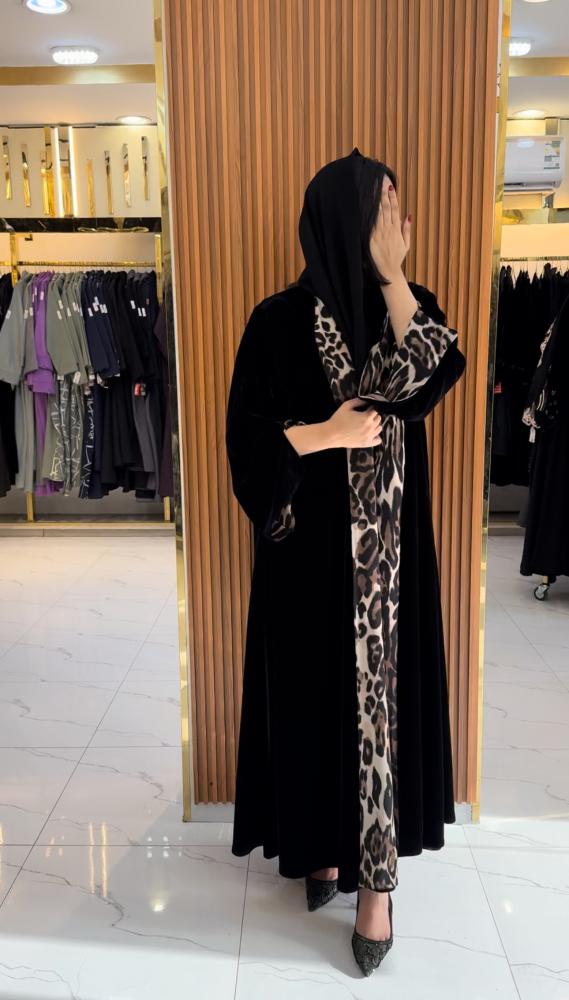 عباية شتويه دبل فيس مخمل مع تايجر بقصة أكمام أنيقه
