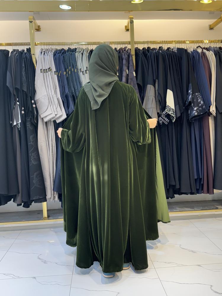 عباية شتويه مخمل اخضر عشبي لون شتوي مميز