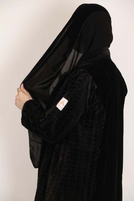 استمتعي بأناقة لا مثيل لها مع عباية مخمل كوري أسود في أسود. تأتي هذه العباية بتصميم أنيق وألوان أسود ساحرة. بفضل قماشها الناعم المخملي، تمنحك هذه العباية إطلالة فاخرة وراقية بأسلوب بسيط بدون تطريز. تصميمها الكلاسيكي يجعلها مناسبة لمختلف المناسبات والأوقات. ارتديها وتألقي بأناقة لا تضاهى.